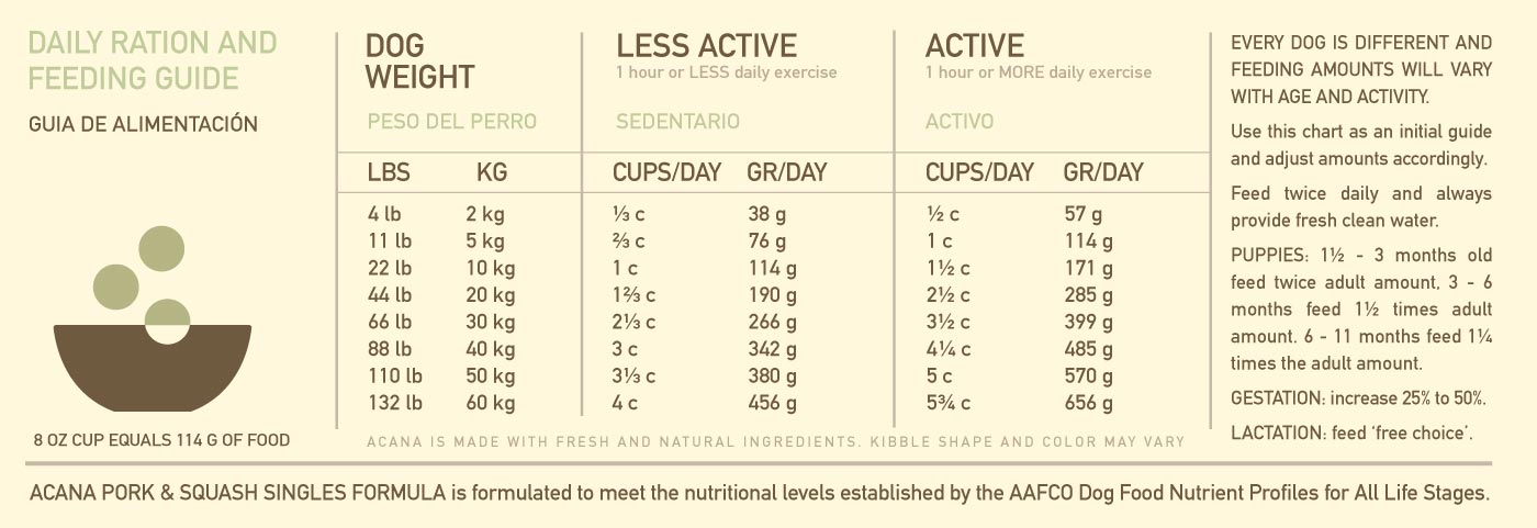 ACANA Pork & Squash beneficia a tu perro de cualquier raza y de cualquier tamaño. Así como tú, tu perro es un individuo con requerimientos alimenticios únicos que varían de acuerdo al ambiente, edad y actividad.