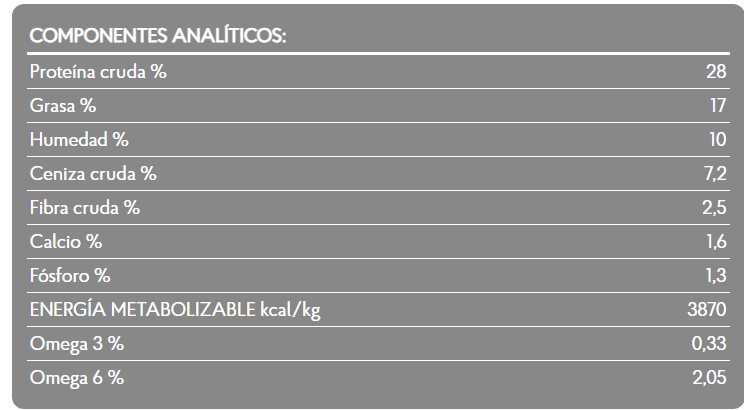 Altos niveles de ácidos grasos Omega-3 provenientes del aceite de salmón, dan soporte al sistema nervioso, una piel saludable y pelaje britllante.