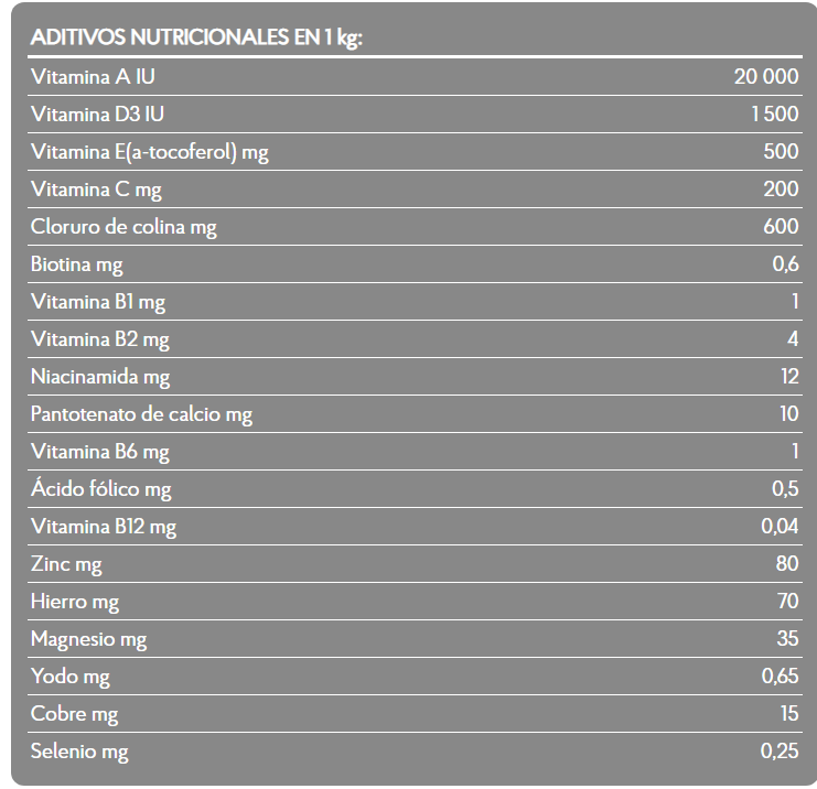 Carne de cordero deshidratada (40%), arroz (36%), grasa de pollo (preservada con tocoferoles), manzanas deshidratadas, aceite de salmón (2%), sabores naturales, levadura de cerveza, conchas de crustáceo hidrolizadas (fuente de glucosamina, 260 mg/kg), extracto de cartílago (fuente de condroitina, 160 mg/kg), manano-oligosacáridos (150 mg/kg), hierbas y frutas (romero, clavo de olor, cítricos, cúrcuma, 150 mg/kg), fructo-oligosacáridos (100 mg/kg), yucca schidigera (100 mg/kg), inulina (90 mg/kg), cardo mariano (75 mg/kg).