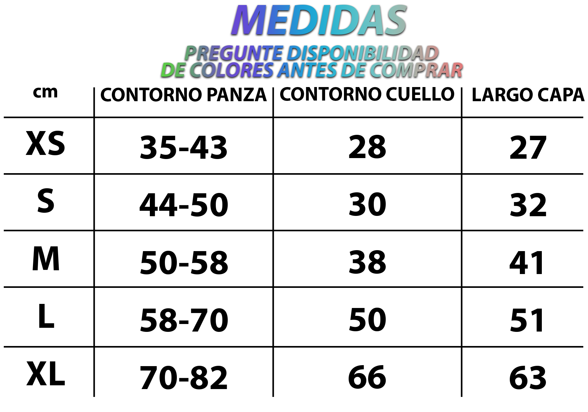Tabla de tallas extendida: la tabla de tallas está confirmada por años de experiencia y se ajusta a la mayoría de razas de perro, por favor, mide el pecho exacto de tu perro, la longitud de la espalda y deja más de 1 a 2 pulgadas. Por favor, asegúrate de medir el tamaño de tu perro antes de comprar. Tu bebé generalmente usa la talla S no significa que todas las tallas se ajustará a él/ella. Si cualquiera de las medidas están entre dos tallas, elige la talla más grandes.