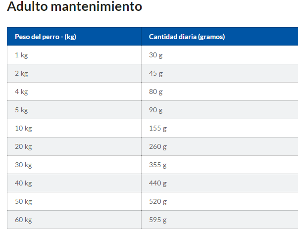 Ajuste las cantidades de alimento según sea necesario para mantener el peso óptimo. Si tiene dudas, consulte a su veterinario.