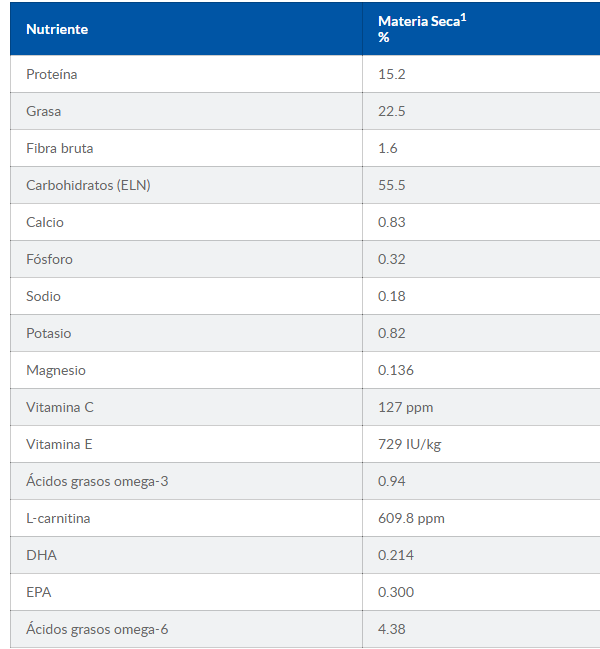 INGREDIENTES: Brown Rice, Brewers Rice, Pork Fat, Cracked Pearled Barley, Chicken, Egg Product, Dried Beet Pulp, Whole Grain Sorghum, Corn Gluten Meal, Chicken Liver Flavor, Soybean Oil, Fish Oil, Calcium Carbonate, Lactic Acid, L-Lysine, Pork Liver Flavor, Potassium Chloride, Potassium Citrate, DL-Methionine, vitamins (Vitamin E Supplement, L-Ascorbyl-2-Polyphosphate (source of Vitamin C), Niacin Supplement, Thiamine Mononitrate, Pyridoxine Hydrochloride, Calcium Pantothenate, Riboflavin Supplement, Vitamin A Supplement, Vitamin B12 Supplement, Biotin, Folic Acid, Vitamin D3 Supplement), L-Threonine, Choline Chloride, Iodized Salt, Taurine, Magnesium Oxide, minerals (Ferrous Sulfate, Zinc Oxide, Copper Sulfate, Manganous Oxide, Calcium Iodate, Sodium Selenite), L-Carnitine, L-Tryptophan, Mixed Tocopherols for freshness, Natural Flavors, Beta-Carotene.