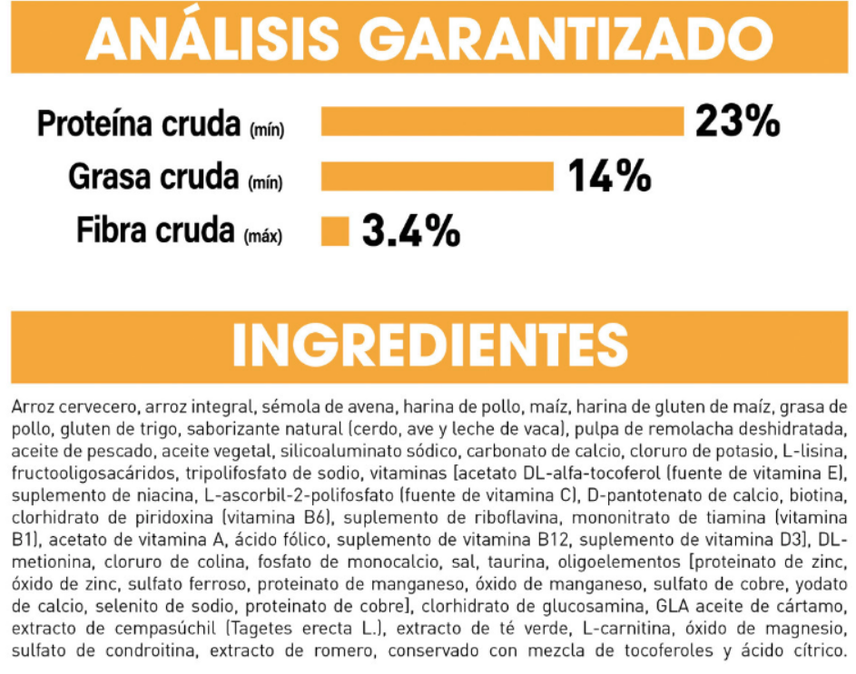 - Favorece a obtener el peso ideal: para perros propensos a la obesidad pueden ayudar las proteínas L.I.P.* de una alta digestibilidad, al igual, que un alto contenido en L-carnitina.